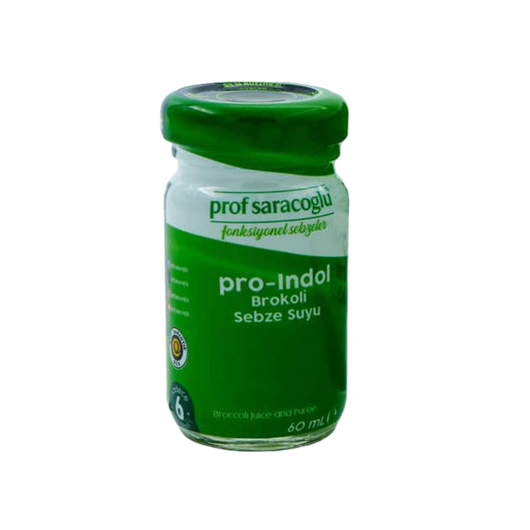 Prof Saracoglu Pro-INDOL Broccoli Functional Vegetable Shot is crafted to highlight the natural power of broccoli, one of the most studied vegetables by Prof. Dr. İbrahim Saraçoğlu.