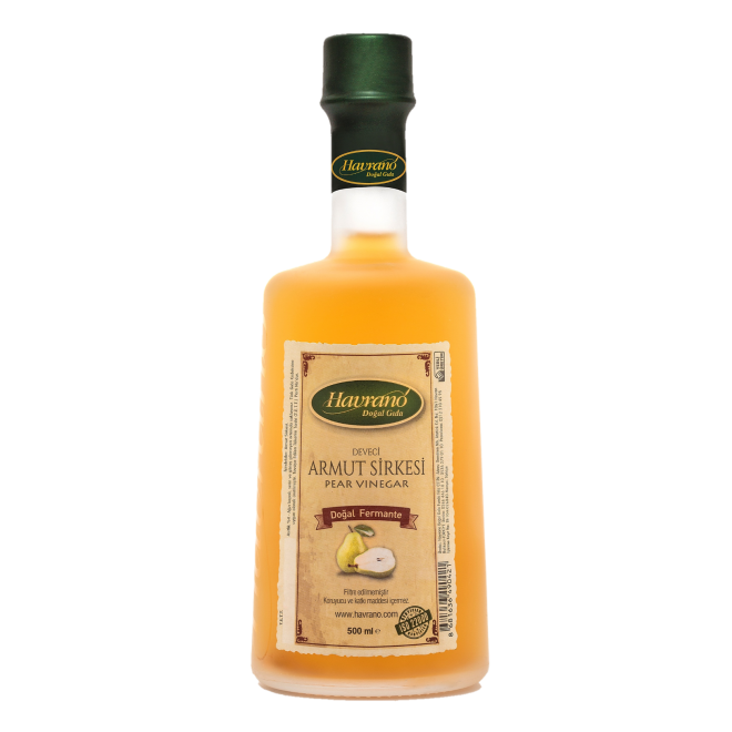 Havrano Pear Vinegar is a special product that brings flavor and naturalness together. Prepared with the unique sweetness and refreshing aroma of pear fruit, this vinegar is a perfect choice for those who want to make a difference in their kitchens. Produced with a natural fermentation process, Havrano Pear Vinegar stands out in terms of both taste and quality.