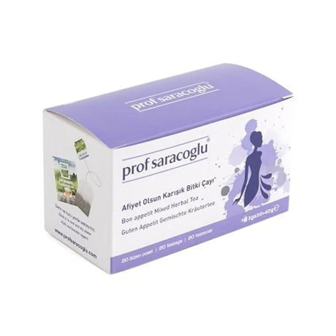 Highlights ✓ 100% Natural✓ Mixed herbs – elder flower, basil, cumin, camomile, fennel, stevia✓ 20 Teabags✓ Pleasant herbal aroma✓ Carefully selected and packaged✓ Free from additivesProduct Detail The parts of the Bon appetit mixed herbs with the right type are selected, separated and packaged according to Prof Saracoglu methods.Ingredients 100% mix of elder flower, basil, cumin, camomile, fennel, steviaProf Saracoglu Bon appetit mixed herbal teabags does not contain additivesIntroduction of Use Add 1 Bon appetit mixed herbal teabag into boiling water (150-200ml) and infuse for 6 minutes. Consume 2 times a day. 30 minutes before a mealIt is recommended not to add sugar, honey or similar additives.It needs to be prepared fresh each time.Store in a cool and dry place. Do not expose to direct sunlight. All descriptions on the website are based on information from the manufacturer or supplier. We recommend that you carefully read the instructions for use and warnings before using a product. the remaining sip is taken.ckage is finished.Warnings ✓ Bon appetit mixed herb is suitable for children over 7 years old✓ Not recommended for pregnant women✓ For breastfeeding women, the use of the herb is only recommended after the 4th month of the breastfeeding period✓ Bon appetit mixed herb is not suitable for people who use heavy antibiotics, heavy antidepressants and heavy blood thinners✓ Keep out of reach of children ✓ Please note that Bon appetit mixed herb is only supportive✓ Consult and inform your physician about your use of this productOther Information It is legally not allowed to give information about the benefits of Bon appetit mixed herbal tea. You can search in open sources for more information. If you have any questions, please send us a message via our chat support. Wishing you healthy days.